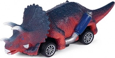 Stylowy samochód w kształcie styrakozaura, łączący elementy dinozaura z funkcjami samochodu, idealny do wesołej zabawy.