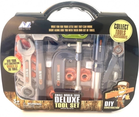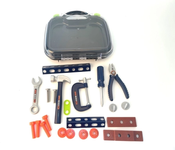 Idealny zestaw prezentowy dla małych majsterkowiczów! Zawiera różne plastikowe narzędzia, takie jak młotek, śrubokręt i klucz, które umożliwiają dzieciom w zabawny sposób odkrywać świat napraw i budowy.