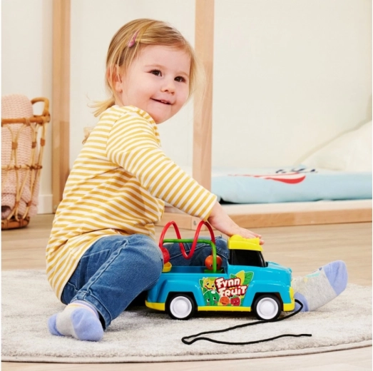 Wesołe autko do ciągnięcia ABC z uroczymi oczami i długością 25 cm oferuje dzieciom od 12 miesięcy mnóstwo zabawy i nauki. Na pace ma kolorowy labirynt z „kawałkami owoców”, które można przesuwać i obracać, co wspiera rozwój małej motoryki i koordynacji ręka–oko. Po naciśnięciu kabiny rozlega się mechaniczny klakson, który zachęca dzieci do odkrywania. Dzięki sznureczkowi do ciągnięcia wspiera aktywny ruch i samodzielną zabawę.