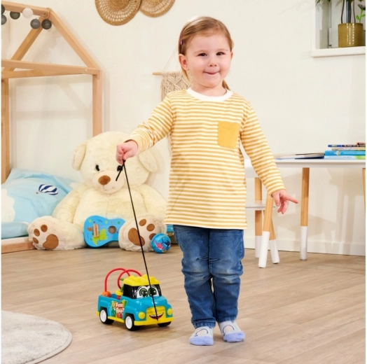 Praktyczny sznureczek pozwala łatwo ciągnąć autko po pokoju i wspiera naturalny ruch oraz równowagę podczas chodzenia.
