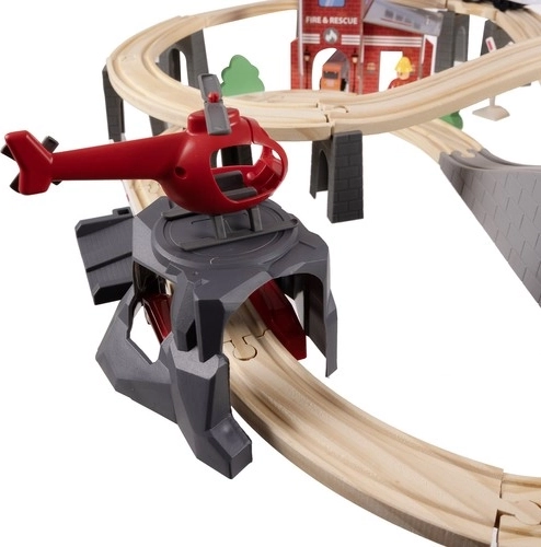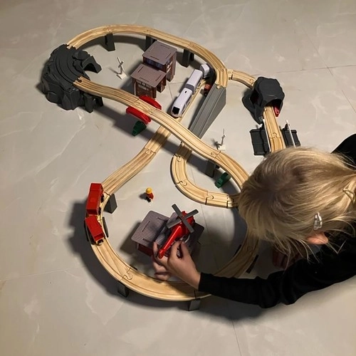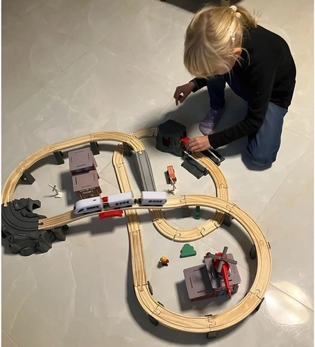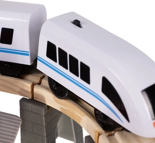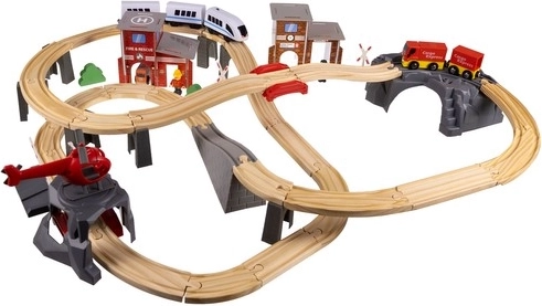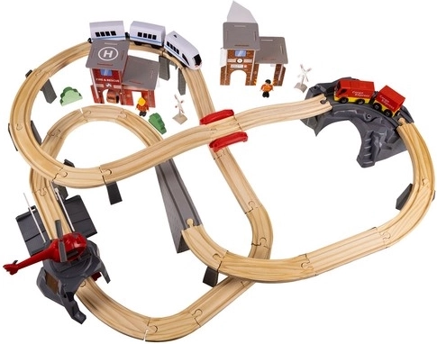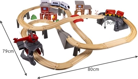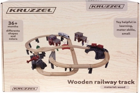 Kruzzel 22754 Drewniana kolejka na baterie 70 elementów, 480 cm