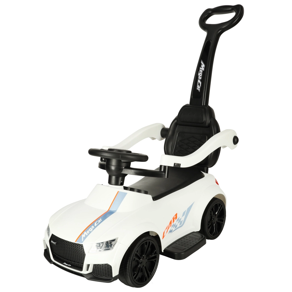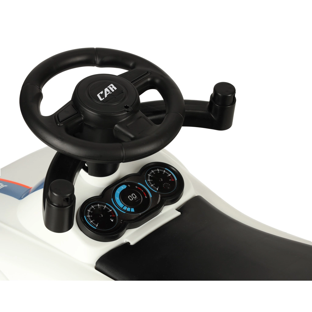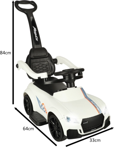 Stylowy jeździk 3w1 dla dzieci od 12 miesięcy oferuje efekty świetlne i realistyczne dźwięki na 3× baterie AA. Dzięki odłączanym elementom łatwo dopasowuje się do wieku dziecka, zapewnia bezpieczne oparcia, wygodne siedzisko i stabilną jazdę wspierającą rozwój motoryki i równowagi.