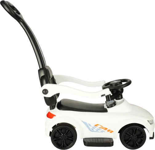 Dzięki modułowej budowie można stopniowo demontować rączkę, boczne barierki i inne części, dopasowując autko do rosnącego dziecka. Ergonomiczna wysokość siedziska i kierownicy wspiera prawidłową postawę i rozwój koordynacji.