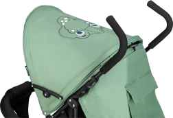 Wózek wyposażony jest w przestronny kosz do przechowywania i dużą regulowaną budkę z okienkiem, która chroni dziecko przed słońcem.