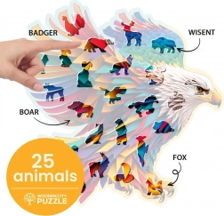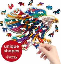 Odkryj magię układania z drewnianymi puzzlami Bystry orzeł od WOODEN CITY. Ten produkt zachwyca specjalnie formowanymi elementami, które tworzą niezapomnianą mozaikę zwierzęcych kształtów. Detale podkreślone laserowo oraz samodzielnie stojące figurki przynoszą nowe wyzwania i radość z układania.
