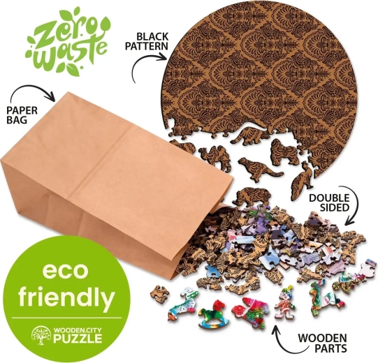 Przeżyj zabawę ze specjalnie kształtowanymi drewnianymi elementami puzzli od WOODEN CITY, które oferują unikalne wrażenia dzięki zwierzęcym figurkom i ekologicznemu opakowaniu.