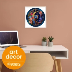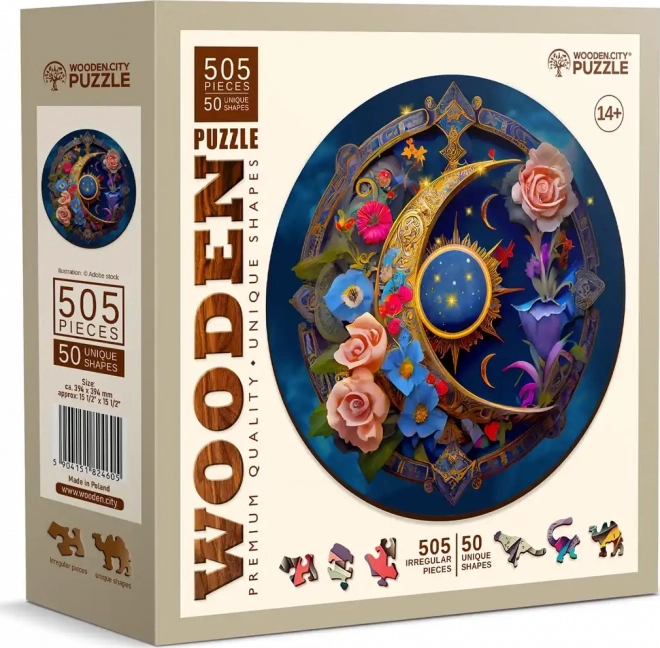 Doświadcz radości tworzenia z unikalnymi puzzlami Kwiatowy Księżyc, które zapewniają wyższy poziom trudności i niecodzienne kształty elementów, mogących stać jak małe figurki. Każdy element jest precyzyjnie wykonany laserowo, co gwarantuje gładkie krawędzie i szczegółowe wzory. Ekologiczne opakowanie bez plastiku to kolejna świetna zaleta, którą docenią miłośnicy natury. Puzzle wykonano z solidnej płyty HDF o grubości 3–4 mm.