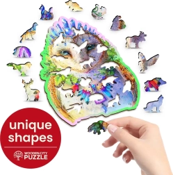 Drewniane puzzle Piękna sowa od WOODEN CITY oferują nieskończoną zabawę dzięki unikatowo kształtowanym elementom. Układaj i odkrywaj z elementami w kształcie zwierząt, które mogą stać samodzielnie jak figurki.