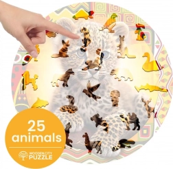 Laserowo wycinane drewniane puzzle marki Wooden City zapewniają ogromną zabawę dzięki specjalnie ukształtowanym elementom. Układanie jest większym wyzwaniem dzięki zwierzęcym kształtom z detalami, które mogą stać jak małe figurki. Nie zawierają żadnych plastikowych opakowań, co wspiera ekologię.