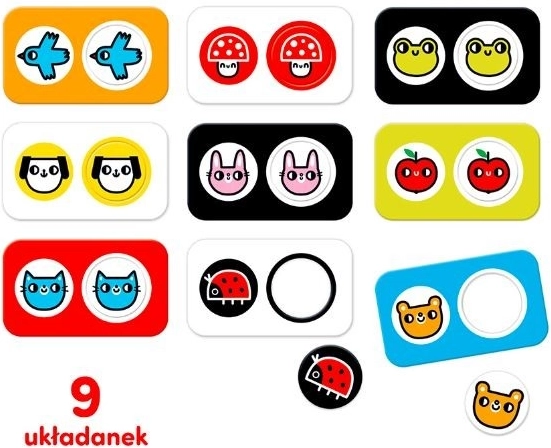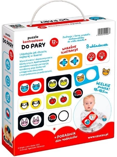 • Zawartość: 9 par układanek (18 elementów) + poradnik dla rodziców