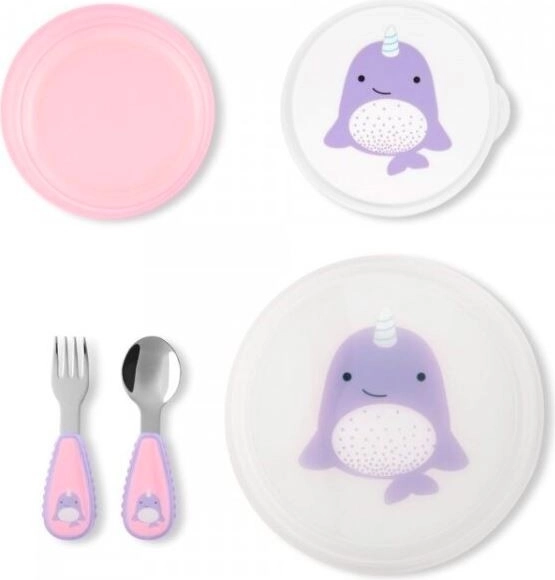 Nasz zestaw naczyń ZOO Narwal to doskonały sposób na zachęcenie dzieci do samodzielności przy stole. Zestaw obejmuje: