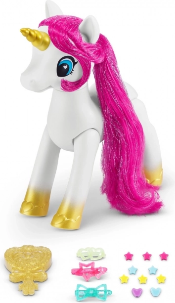 Dzięki dołączonym akcesoriom możesz stylizować włosy jednorożca na różne sposoby, zapewniając nieskończoną zabawę.