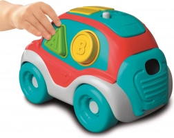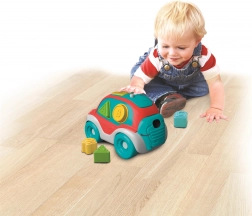 Autko oferuje otwory na różne kształty geometryczne. Dzieci podczas wkładania ćwiczą małą motorykę i uczą się rozpoznawać kolory oraz kształty.