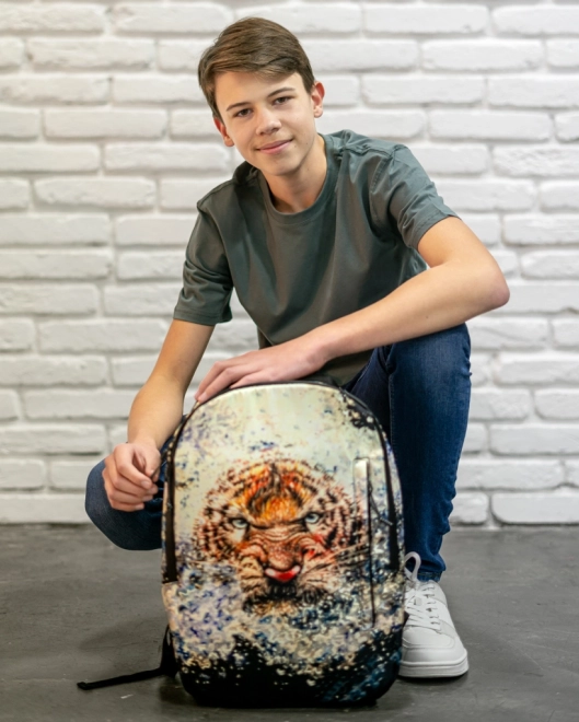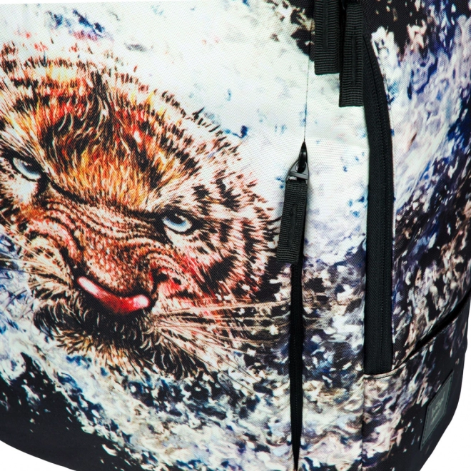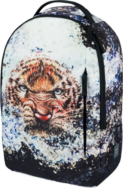 Stylowy miejski plecak z materiału w 100% z recyklingu, wodoodpornego z wyrazistym motywem tygrysa autorstwa Lukero. Oferuje ergonomicznie wyprofilowane plecy, regulowane paski, wewnętrzną kieszeń na laptop 15" oraz praktyczne przednią i górną kieszeń na zamek. Dzięki niskiej wadze 500 g, pojemności 18 l i nośności 7 kg jest idealny na co dzień.