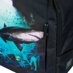 Stylowy miejski plecak z 100% materiału z recyklingu, wodoodporny z motywem rekina od LUKERO. Oferuje ergonomicznie wyprofilowane plecy, lekką konstrukcję (500 g), pojemność 18 l oraz kieszeń na laptop 15". Idealny do codziennego noszenia do szkoły, pracy i na czas wolny.