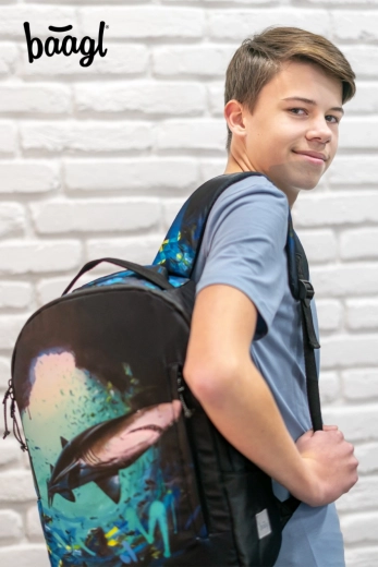 Odkryj wygodę i zrównoważony styl z plecakiem BAAGL eARTh – Rekin by LUKERO. Dzięki wodoodpornemu, w 100% z recyklingu materiałowi, Twój ekwipunek pozostanie bezpieczny w każdych warunkach, a wyrazista grafika z motywem rekina przyciąga wzrok od pierwszego spojrzenia.