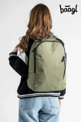 Stylowy miejski plecak BAAGL eARTh w kolorze khaki wykonany jest z 100% materiału z recyklingu, wodoodpornego. Oferuje ergonomicznie wyprofilowane plecy, regulowane szelki, wyściełaną kieszeń na laptop 15" oraz praktyczne przednią i górną kieszeń na zamek. Dzięki niskiej masie 500 g, pojemności 18 l i nośności do 7 kg jest idealny do szkoły, miasta i pracy.