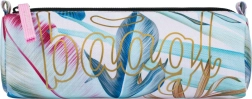 Dzięki praktycznemu zamknięciu na suwak wszystkie twoje przybory do pisania będą bezpiecznie przechowywane. Piórnik przyciąga uwagę swoim kolorowym wzornictwem, które obejmuje kombinację turkusu, złota i różu.