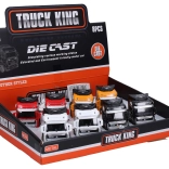 Metalowy ciągnik napędzany wstecznie o wymiarach 12x5,5x7,5 cm jest idealną zabawką dla małych miłośników samochodów. Do wyboru z czterech kolorów - czarny, żółty, czerwony i biały.