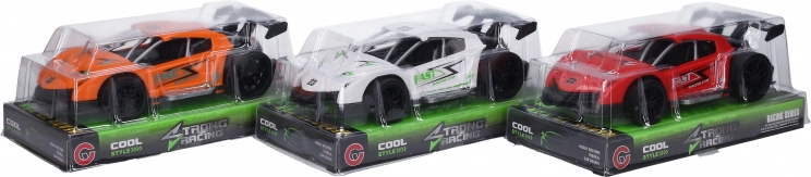 Wyścigówka na napęd cierny o długości 15,5 cm to idealna zabawka dla małych kierowców wyścigowych. Dostępna w atrakcyjnych wariantach kolorystycznych: czerwonym, pomarańczowym i białym, które przyciągają uwagę i zapewniają długie godziny zabawy.