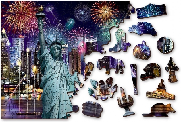 Drewniane puzzle "Nowy Jork w nocy" oferują niezapomniane doświadczenie układania dla wszystkich miłośników puzzli. Każdy z 200 elementów jest precyzyjnie wycięty laserem z wysokiej jakości drewna, zapewniając trwałość i precyzję. Przednia strona elementów zdobiona jest szczegółowymi obrazkami, podczas gdy tylna strona ma wzór tapet dla wyższego estetycznego doświadczenia.