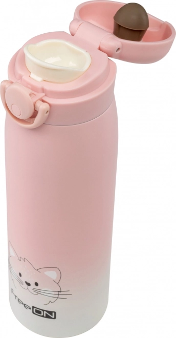 Lekki i poręczny termos z motywem kotka, idealny do codziennego użytku.