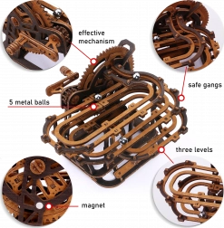 Ciesz się fascynującym doświadczeniem z tą drewnianą 3D torem kulowym od Wooden City. Wykonana z wysokiej jakości sklejki brzozowej, oferuje dopracowane szczegóły i funkcjonalny model mechaniczny kulek, które poruszają się labiryntem napędzanym ręcznym mechanizmem.