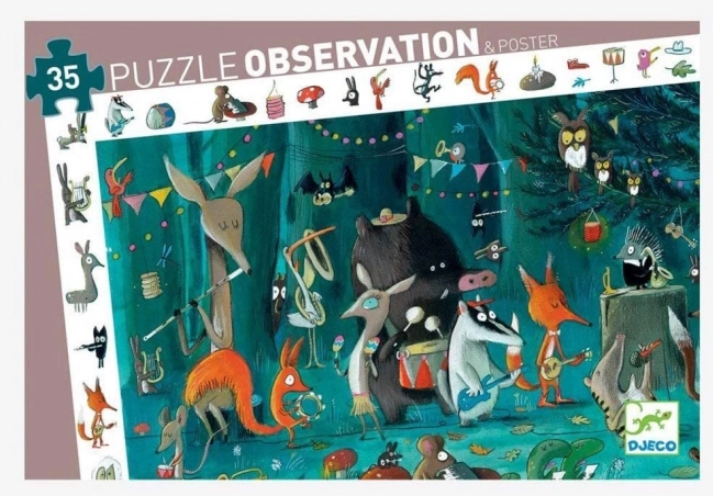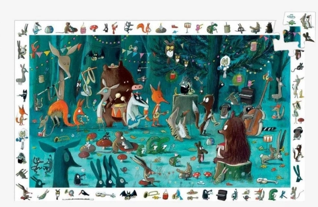 Odkryj magię muzyki z dziecięcymi puzzlami DJECO – Leśna orkiestra. Układanka z 35 solidnych elementów tworzy duży obraz o wymiarach 61 × 38 cm oraz oferuje zabawną grę w wyszukiwanie szczegółów. W zestawie znajduje się także plakat. Idealna dla dzieci od 3 lat, które podczas układania ćwiczą małą motorykę, koncentrację i poznawanie instrumentów muzycznych. Duże i solidne elementy, ramka-wyszukiwanka z obiektami oraz plakat ułatwiający układanie gwarantują godziny kreatywnej zabawy.