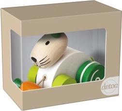 Ta klasyczna zabawka do ciągnięcia w formie królika z marchewką to idealny towarzysz podczas pierwszych kroków. Zachęca dzieci do chodzenia, wspiera koordynację ręka–oko i przynosi radość z ruchu. Dzięki uroczej stylistyce dzieci szybko ją pokochają.