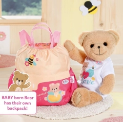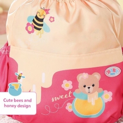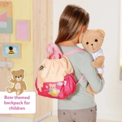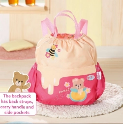 Podaruj dzieciom mnóstwo zabawy z kolorowym plecaczkiem BABY BORN, do którego łatwo włożą swojego misia i wyruszą na przygodę w domu i na zewnątrz. Plecaczek wyróżnia się figlarnym różowym wyglądem z nadrukiem kapiącego miodu i pszczółek i jest idealny na spacery oraz zabawę.