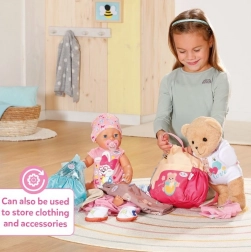 Praktyczne boczne kieszenie pomieszczą wszystkie drobiazgi – smoczek, buteleczkę, pieluszkę czy małe akcesoria. Plecaczek można również używać jako małej torby do przenoszenia akcesoriów, pieluszek i ubranek dla misia lub lalek BABY BORN. Odpowiedni dla dzieci od 1 roku do długotrwałej kreatywnej zabawy z pluszakami i lalkami.