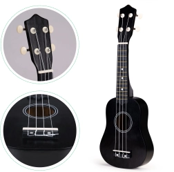 Odkryj radość z muzyki z dziecięcym ukulele, które wygląda i zachowuje się jak prawdziwy instrument. Dzięki strojonym mechanikom i nylonowym strunom dzieci nauczą się grać proste piosenki i stopniowo doskonalić technikę. Kompaktowy rozmiar oraz solidne drewniane pudło zapewniają wygodne trzymanie i długą żywotność.