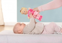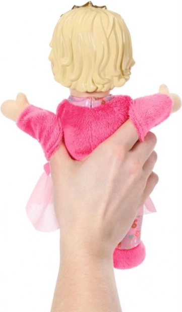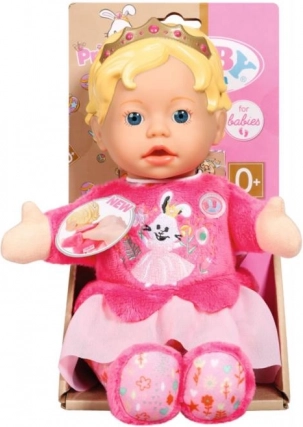 Księżniczka BABY Born dla najmłodszych to idealna pierwsza lalka dla niemowląt i maluchów. Mięciutkie ciałko zachęca do tulenia, a lekka winylowa główka ze złotą koroną nadaje zabawce królewski wygląd. Zintegrowane kieszonki w dłoniach zamieniają lalkę w pacynkę – wystarczy wsunąć palce i zacząć opowiadać historie.