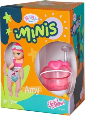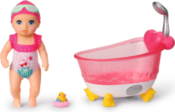 Laleczka BABY born Minis Amy o wysokości 7 cm w różowym stroju kąpielowym idealnie mieści się w małych dziecięcych rączkach i jest gotowa na wodne przygody.