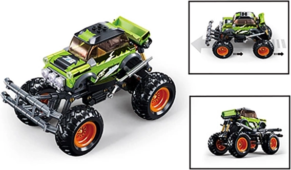 Zestaw konstrukcyjny Sluban Bigfoot Green łączy kreatywne budowanie z dynamiczną zabawą. Dzięki nakręcanemu mechanizmowi wystarczy pociągnąć model do tyłu, a monster truck ruszy do przodu. Solidny design, intensywne kolory i dopracowanie detali czynią z tego modelu doskonały wybór dla małych miłośników aut terenowych.