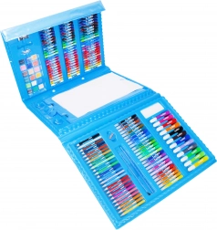 Kompletny zestaw plastyczny 208 szt. w praktycznym kuferku dla małych i dużych twórców. Zawiera pastele olejne, kredki, flamastry, kredki woskowe oraz farby akwarelowe i bogate akcesoria do rysowania i malowania w domu, w szkole i w podróży.