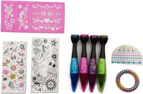 Stwórz własne tymczasowe tatuaże i oryginalne zdobienia ciała z zestawem Tattoo Studio. Zestaw zawiera markery ze specjalnymi końcówkami oraz pieczątki do szybkich motywów i szablony do precyzyjnych kształtów. Idealny na imprezy, festiwale i dziecięce przyjęcia – łatwe użycie, kreatywna zabawa i efektowne rezultaty w kilka chwil.