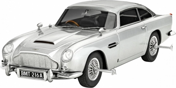 Ikoniczny model samochodu Aston Martin DB5 z filmu JAMES BOND 007: Goldfinger w skali 1:24 jako kompletny zestaw upominkowy. Zawiera plastikowy model do sklejenia, naklejki, podstawowe farby Revell Aqua Color, pędzelek, ilustrowaną instrukcję oraz plakat. Nie brakuje legendarnego wyposażenia jak wysuwany karabin maszynowy czy kuloodporna przegroda oraz skrętne koła dla autentycznych wrażeń modelarskich.