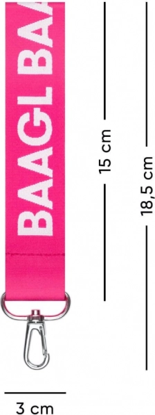 Breloczek na klucze BAAGL w różowym kolorze oferuje doskonałe połączenie stylu i funkcjonalności. Wykonany z 100% poliestru, ten wytrzymały breloczek jest przeznaczony do długotrwałego użytku. Z długością 15 cm i szerokością 3 cm zapewnia wystarczająco dużo miejsca dla wygodnego trzymania.