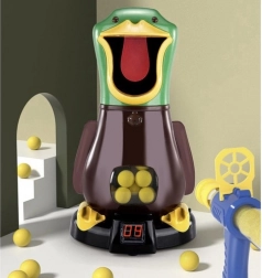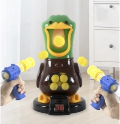 Gra Głodna kaczka zamieni salon w strzelnicę pełną zabawy. Kaczka po trafieniu kwacze, a na dużym wyświetlaczu LCD dolicza punkt, więc wynik masz zawsze pod kontrolą. Dzięki miękkim piankowym piłeczkom gra jest bezpieczna dla dzieci i odpowiednia do użytku w pomieszczeniach.