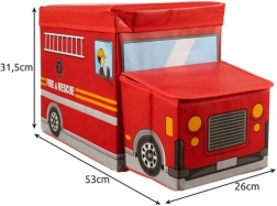 Zamień sprzątanie w przygodę z boxem na zabawki w stylu Fire & Rescue. Dzięki wymiarom 53 × 26 × 31,5 cm pomieści pluszaki, klocki, autka i artykuły plastyczne. Pokrywa bezpiecznie ukryje dziecięce skarby i pomoże utrzymać pokój w idealnym porządku.