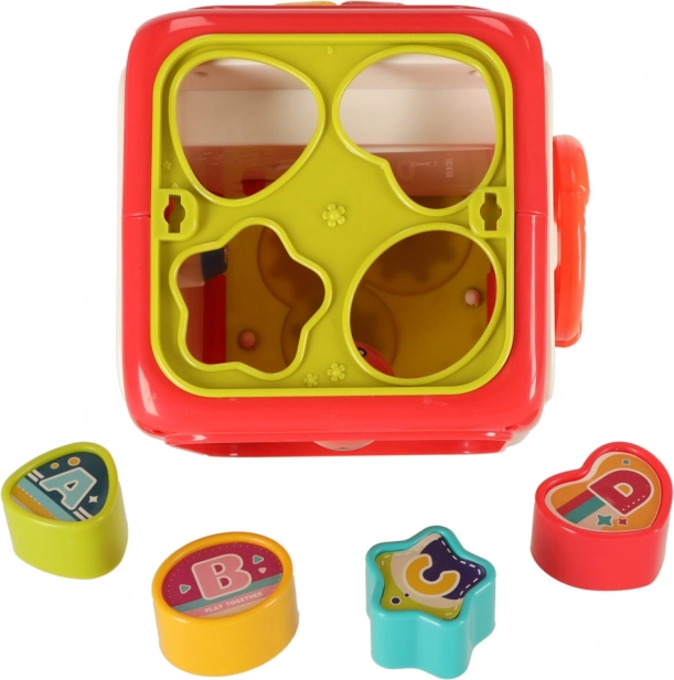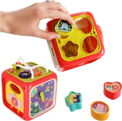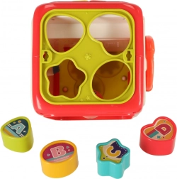 - Składa się z kostki i czterech bloków, które wspierają rozpoznawanie kształtów i kolorów.