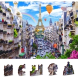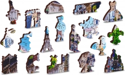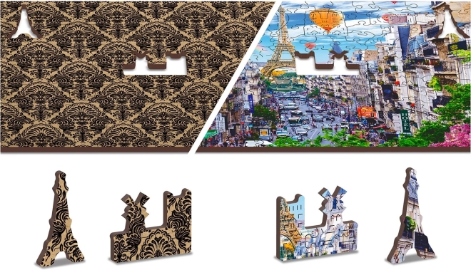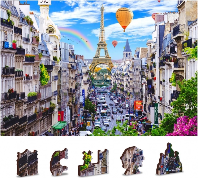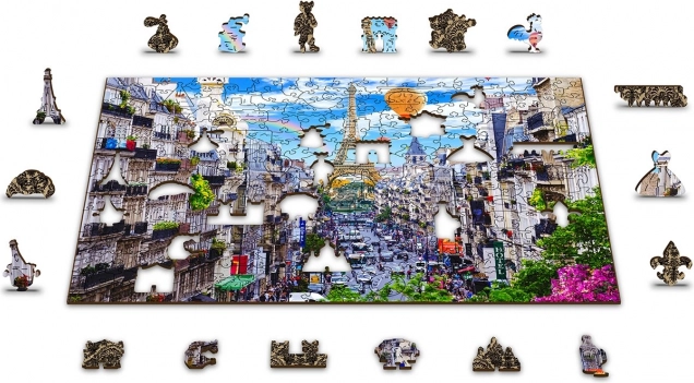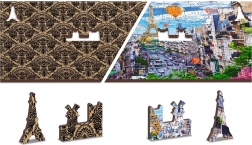 Drewniane puzzle Ruchliwy Paryż od WOODEN CITY są unikalne swoją dwustronną konstrukcją i specjalnie ukształtowanymi elementami, które ożywiają całą scenę podczas układania. Układanie jest bardziej wymagające z powodu różnorodnych kształtów elementów, ale jednocześnie bardziej zabawne. Stanowi wyzwanie nawet dla doświadczonych entuzjastów układania.