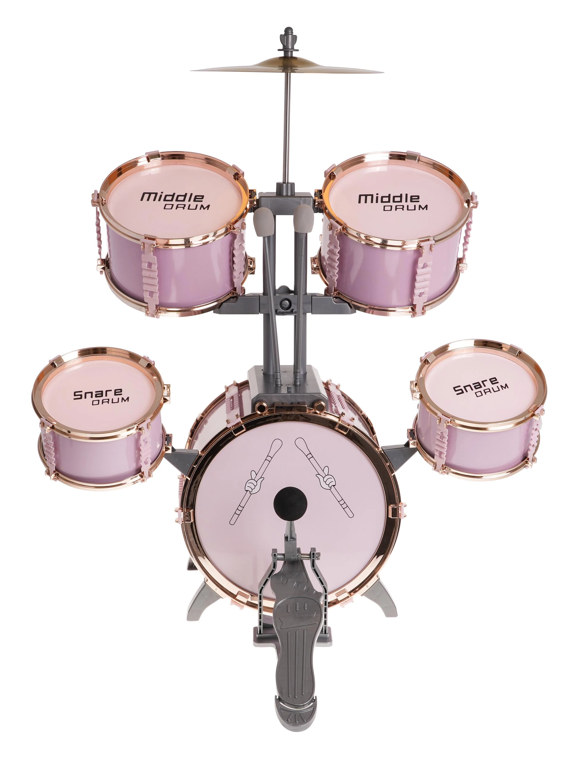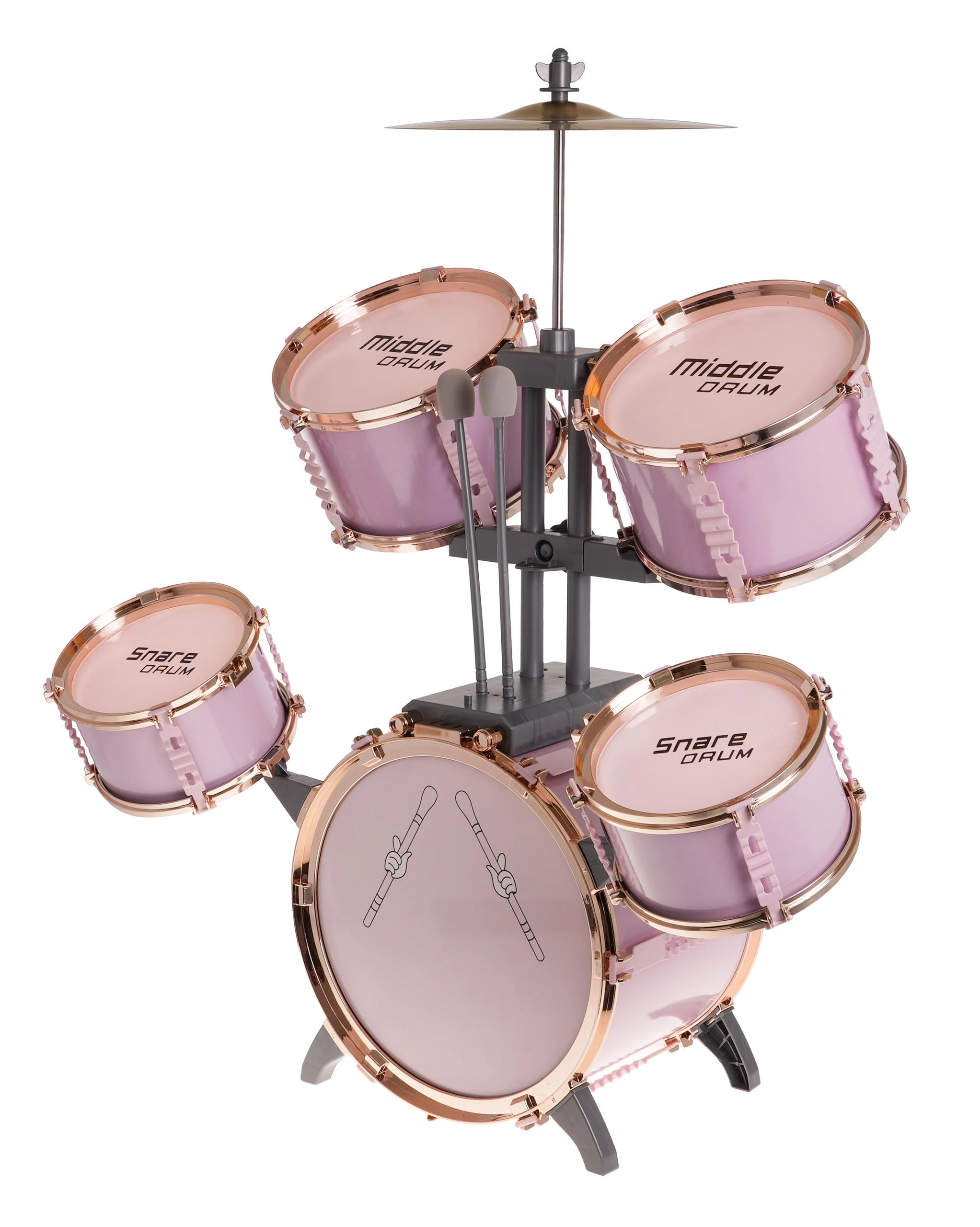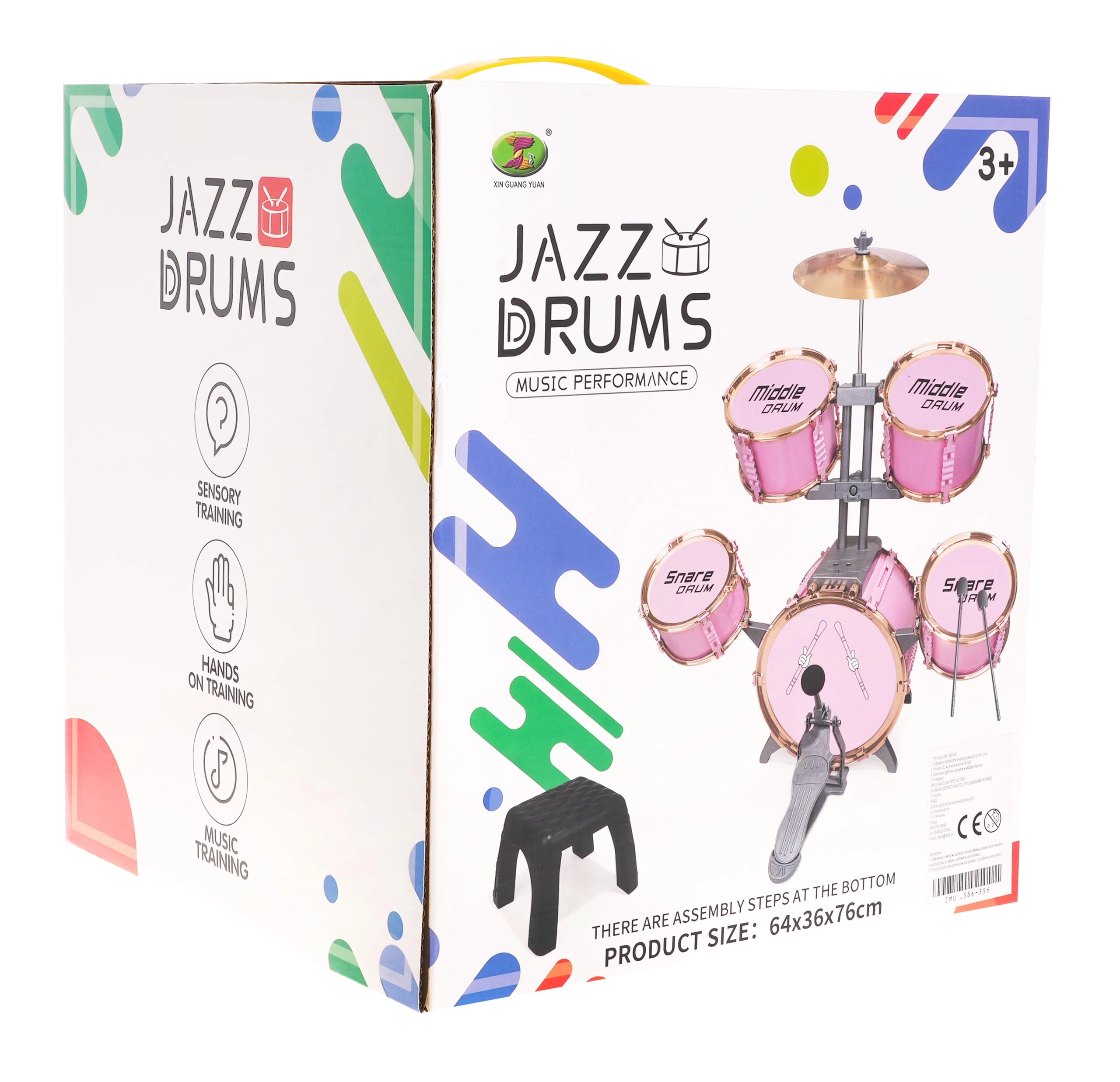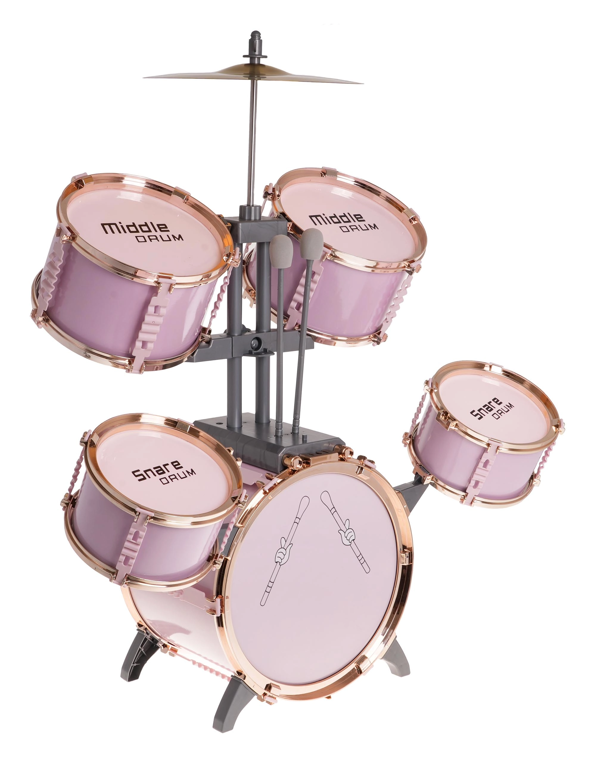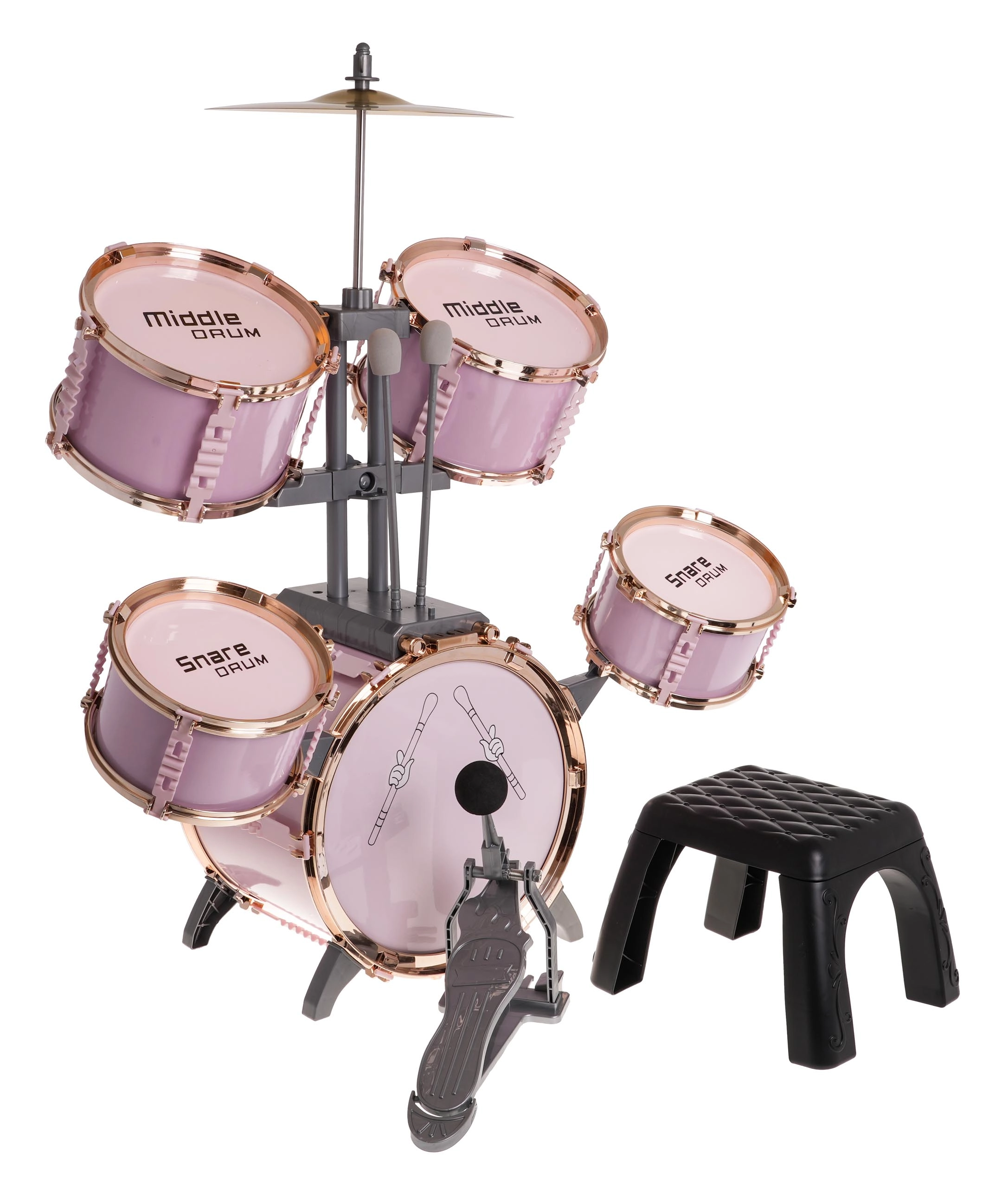 Duży różowy zestaw perkusyjny ze stołkiem dla dzieci od 3 lat. Ten zabawny instrument muzyczny nie tylko ucieszy dzieci, ale także wprowadzi je w świat muzyki i rytmu.