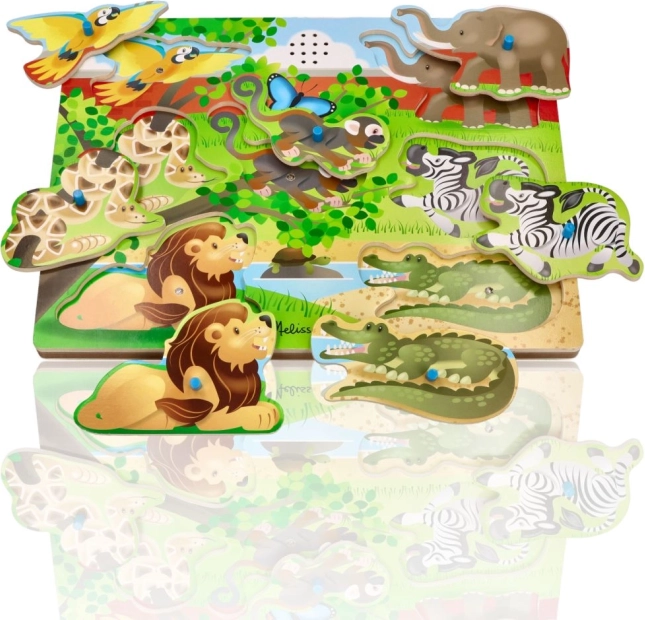 Dźwiękowe puzzle Zwierzęta z Zoo to idealny prezent dla Twoich dzieci, łączący zabawę i naukę. Dzięki tej wesołej zabawce dzieci odkryją dźwięki różnych zwierząt: od lwów po słonie.
