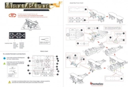 Elementy łączy się poprzez zaginanie zamków; dołączona instrukcja krok po kroku ułatwi budowę także mniej doświadczonym modelarzom.