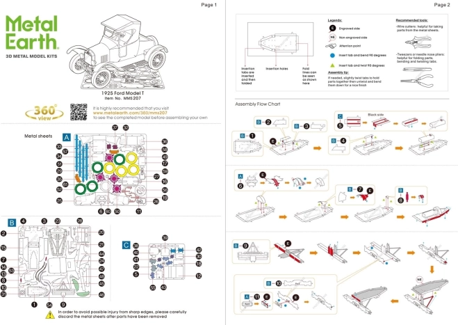 Wyciete wcześniej stalowe blaszki z laserowym grawerowaniem tworzą detaliczny wygląd klasycznego Forda Model T Runabout 1925.