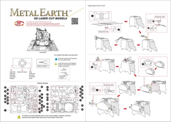 Ten realistyczny metalowy model 3D bazuje na kultowym lądowniku programu APOLLO. Z dwóch kwadratowych stalowych blaszek 11 × 11 cm stopniowo złożysz dopracowany lądownik księżycowy z panelami, drabinką i nogami lądowania. Dzięki grawerowaniu laserowemu uwydatnione są subtelne detale nadające modelowi autentyczny wygląd.