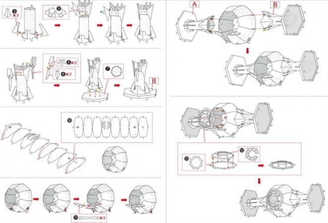 Elementy łączą się za pomocą zaczepów i otworów. Wystarczą małe szczypce i cierpliwość – efekt jest solidny i czysty, bez użycia kleju.