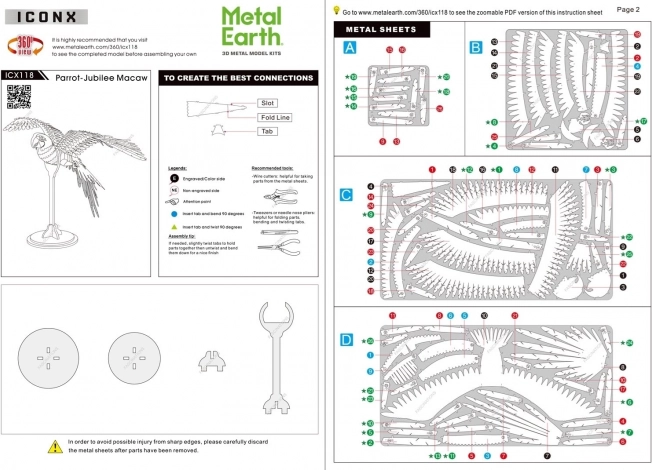 metal earth 3D puzzle papuga ICONX – metalowy model do złożenia